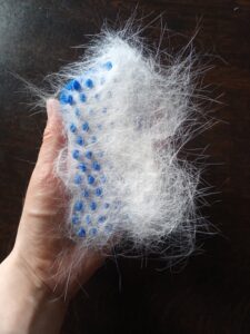 30秒もしないうちに、ブラシがルーニーの毛で真白になってしまいました。